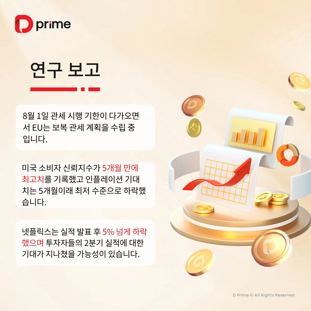 D Prime 등 거래 플랫폼에서 어떠한 거래를 진행하기 전에 고객은 각 금융상품의 거래 위험을 충분히 읽고 완전히 이해했는지 반드시 확인해야 합니다. 거래 및 투자와 관련된 위험에 대해 의문이 있을 경우, 고객은 반드시 독립적인 전문가의 조언을 구해야 합니다. 보다 자세한 내용은 D Prime 등의 고객 계약서 및 위험 공시문을 참조하시기 바랍니다.