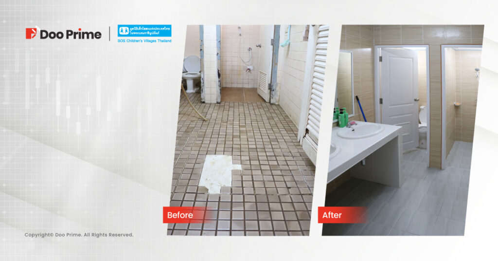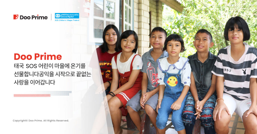 Doo Prime은 모든 아이들이 따뜻한 환경, 편안한 옷, 좋은 교육 환경에서 즐거운 어린 시절을 보내야 한다고 굳게 믿고 있습니다. Doo Prime의 도움으로 태국 SOS 키즈 빌리지의 홈 하우스는 SOS 키즈 빌리지 아이들이 사랑과 따뜻함이 가득한 새 집에서 크리스마스를 즐길 수 있도록 개조되었습니다.