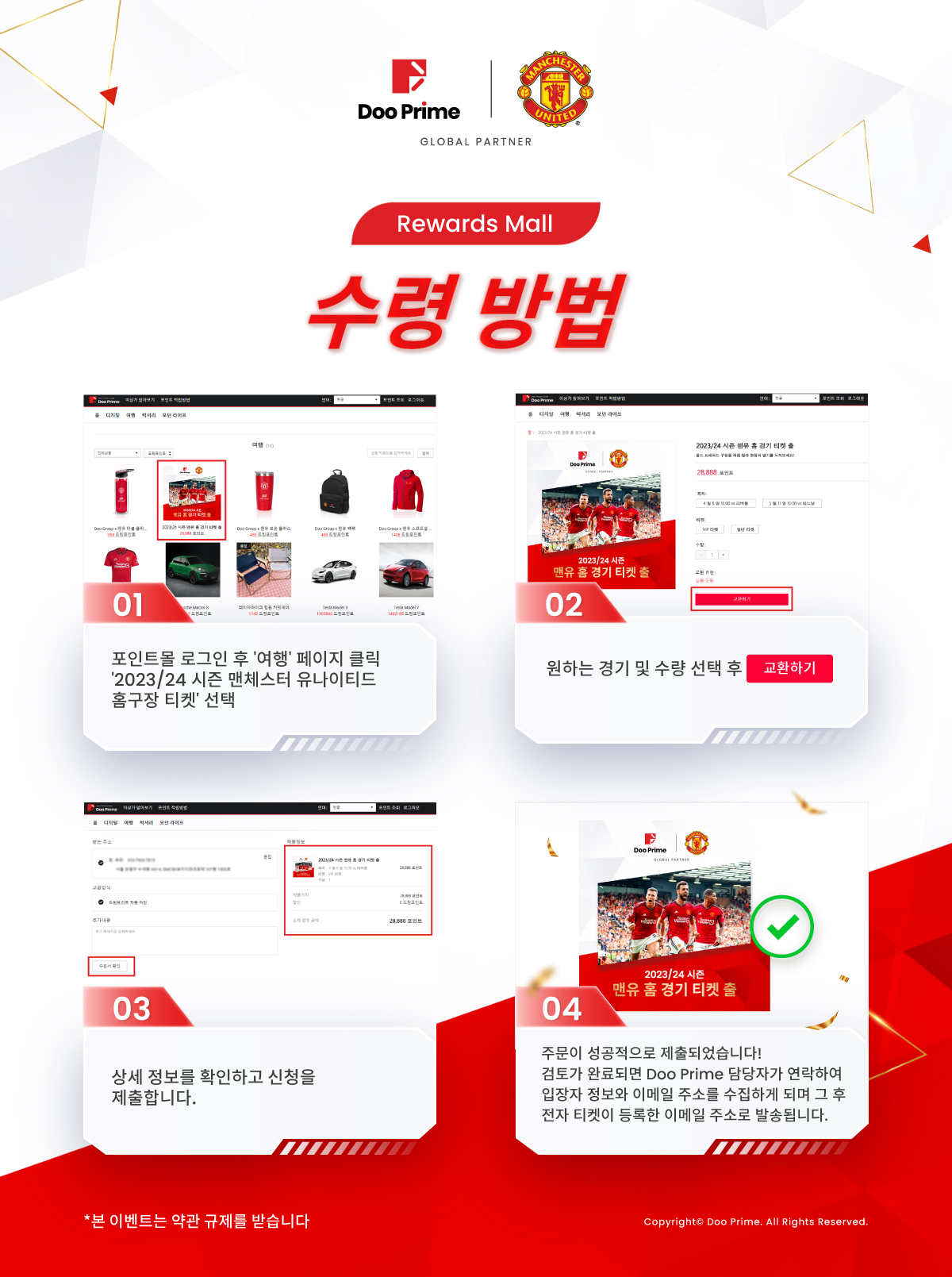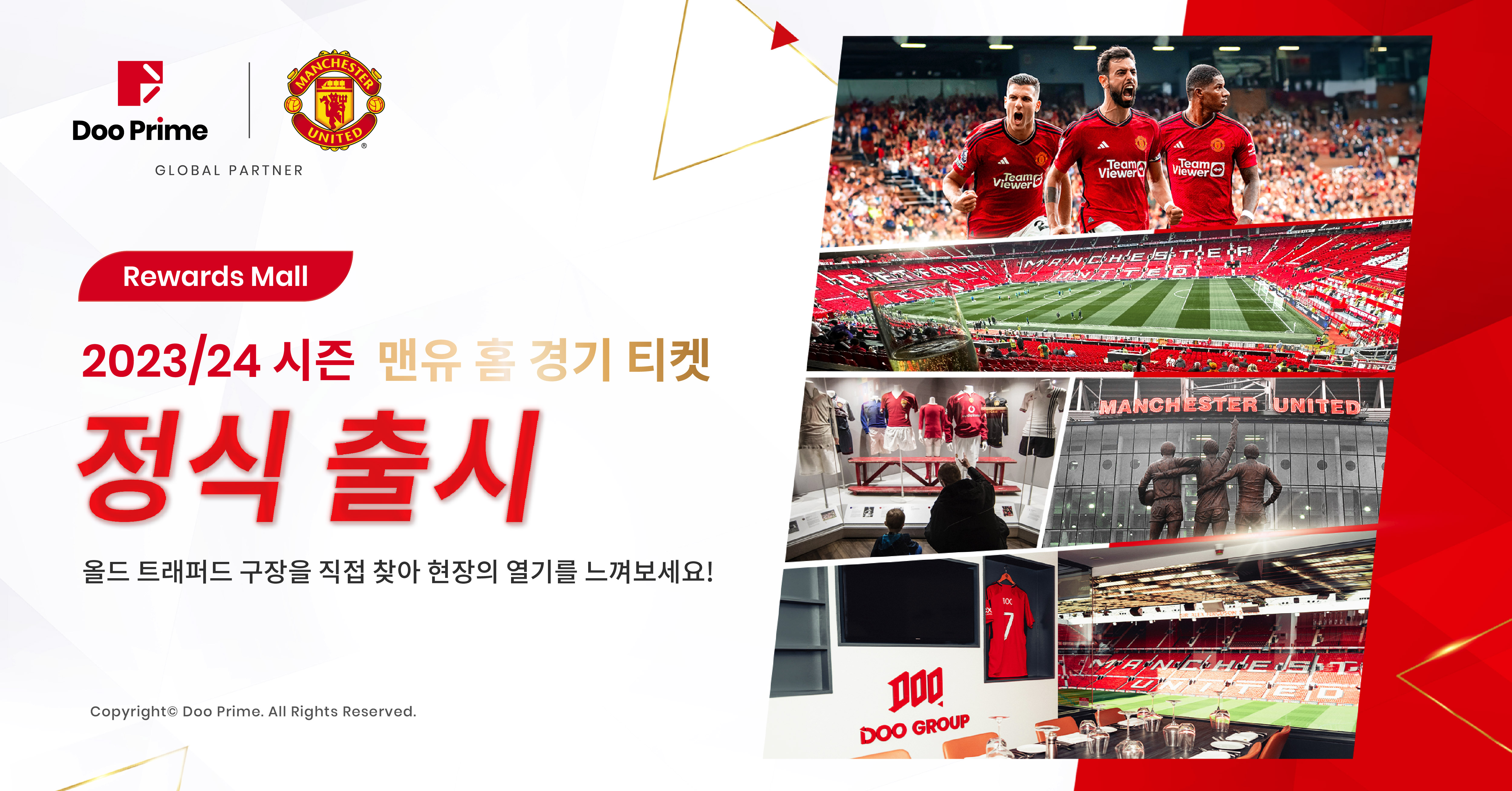 맨체스터 유나이티드의 글로벌 파트너로서 Doo Prime “드림홈” 포인트몰은 Doo Prime에 대한 광대한 고객 및 맨체스터 유나이티드 팬의 지원과 신뢰에 대한 보상으로 다양한 선물을 순차적으로 출시할 예정입니다.