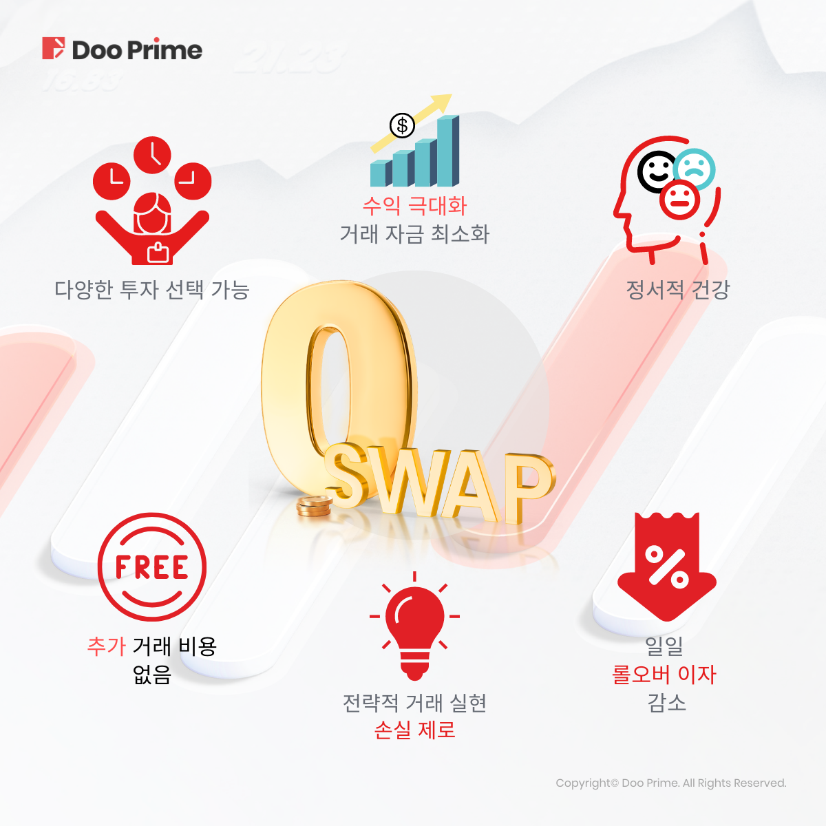 본 정보는 일반 참고용으로만 제공되며 어떠한 금융도구를 사고파는 어떠한 투자 건의, 추천, 청약 또는 초청으로도 볼 수 없습니다.본문에 나타난 정보는 어떠한 특정 접수자의 투자 목표나 재무상태를 참고하거나 고려하지 않은채 준비되어 있습니다.금융기구, 지수, 혹은 패키지 투자상품의 과거 표현을 언급하는것은 모두 그 미래실적의 믿을만한 지표로 볼 수 없습니다. Doo Prime은 표시된 정보에 대해 어떠한 진술이나 보증도 하지 않으며, 제공된 정보의 부정확함과 불완전으로 인한 어떠한 직간접적인 손실이나 손해에 대해서 아무런 책임을 지지 않습니다.Doo Prime은 개인투자와 관련된 어떠한 직간접적 거래 위험, 손익에 대해서도 책임을 지지 않습니다.