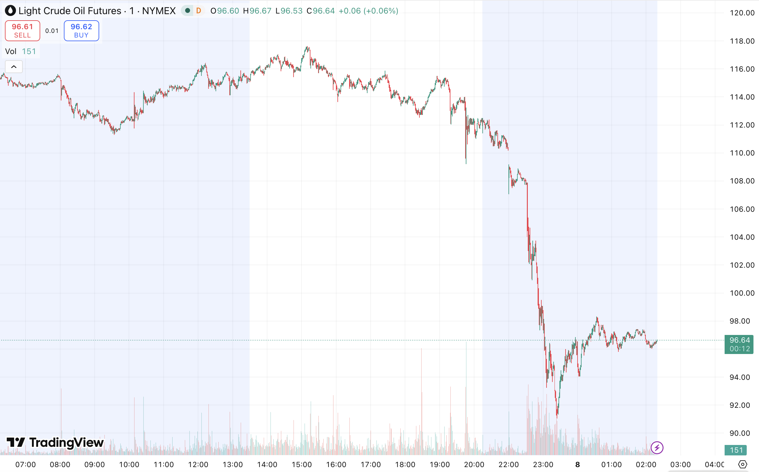 技术面上,日线结构显示油价在经历快速拉升后进入高位震荡阶段,目前已回落至关键支撑区域附近。下方 90 美元为重要支撑位,若有效跌破,可能引发趋势性抛售,进一步打开下行空间;上方阻力则集中在 108 美元区域,该位置此前多次压制价格反弹。从动能角度看,上涨动能明显减弱,市场进入情绪释放后的再平衡阶段。从 4 小时周期观察,价格短线呈现加速下跌后的技术性整理格局,若反弹未能突破 108 美元,则仍偏向弱势震荡;一旦重新站稳该水平,则可能再次测试此前 116 美元高点压力区域。