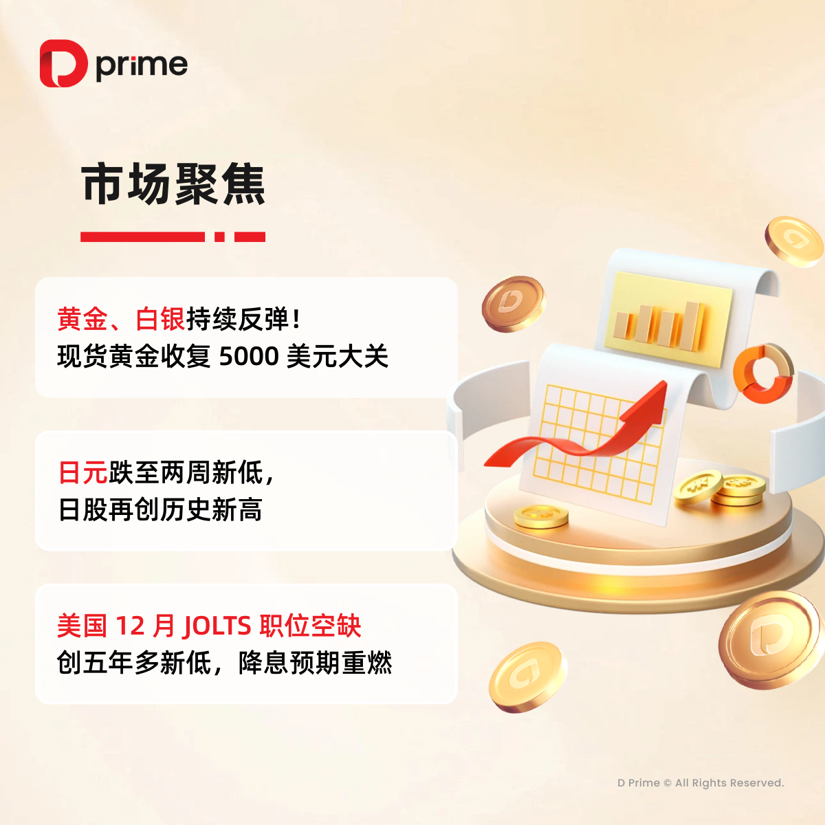 精选研报 | 上周,美国 12 月 JOLTS 职位空缺创五年多新低,降息预期重燃。黃金、白银持续反弹! 现货黄金收复 5000 美元大关! 本周,由于此前美国政府遭遇了短暂的停摆,多项重磅经济数据被推迟到了本周集中发布。还有哪些大事值得关注?下方图片速览: