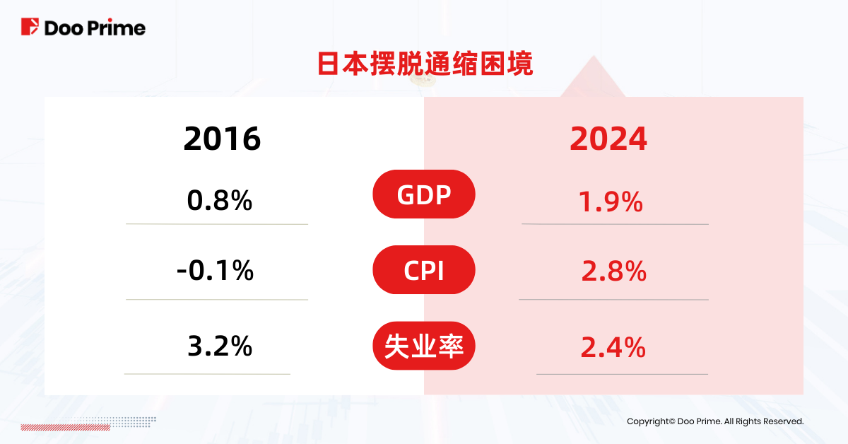 伴随日本经济增长动能复苏,国内通胀正逐步转为需求拉动型通胀,日本终于摆脱低增长、低通胀、低就业的困境,促使日本央行终于在 17 年后首次加息。
