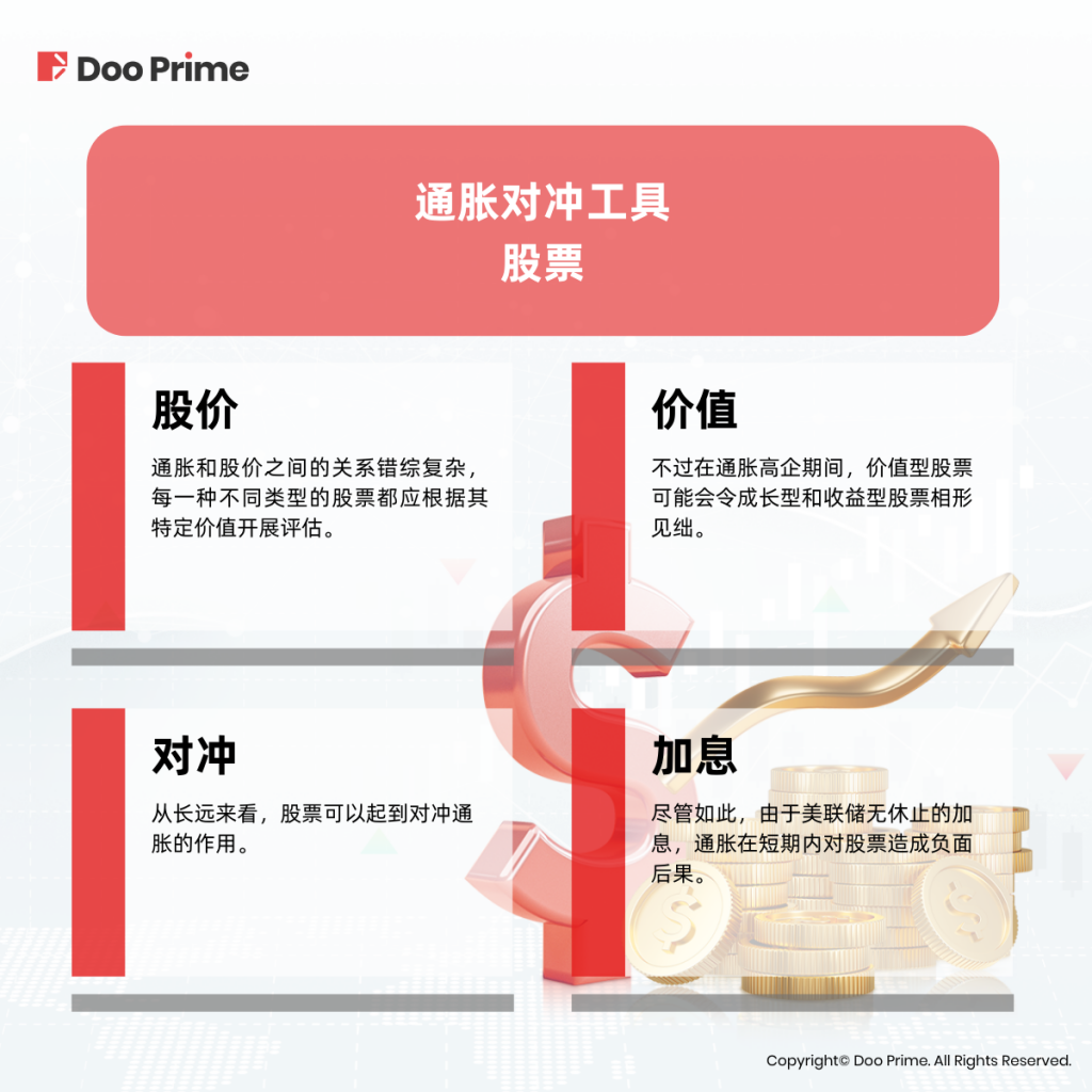 从长远来看,股票可以起到对冲通胀的作用。随着通胀走高,股票价值会随着时间的推移而升值,因为企业最终会适应通胀压力,调整自身产品或服务的价格。因此,营收终将增加,利润率也将重回常态,令投资者收获股息回报。
