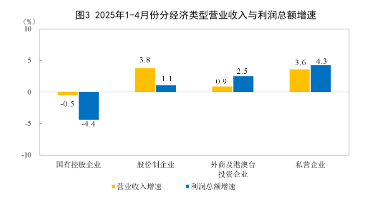 4 月份,全国规模以上工业企业利润同比增长 3.0%,较 3 月份加快 0.4 个百分点。