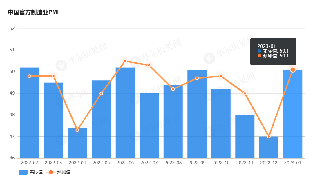 1 月份制造业 PMI 为 50.1%,前值为 47%,比上月上升了 3.1%,升至临界点以上,制造业景气水平明显回升。