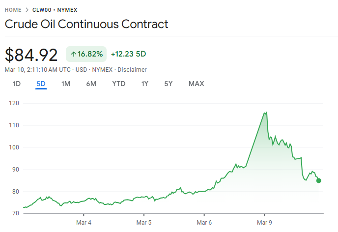 在常规交易阶段,WTI 原油在近 28 美元区间内大幅波动;布伦特原油结算价跌至每桶 99 美元下方,盘中最高曾触及 119.50 美元,从高点至收盘的跌幅创下历史纪录,凸显地缘风险下市场情绪的剧烈反转。