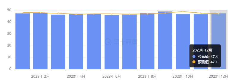 • 新订单指数仅为 47.1,低于预期的 49.1 与前值 48.3,已连续 16 个月收缩;