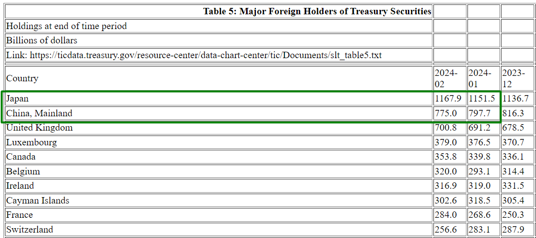 2024-04-18 | 中国 , 日本 , 美债 , 美国