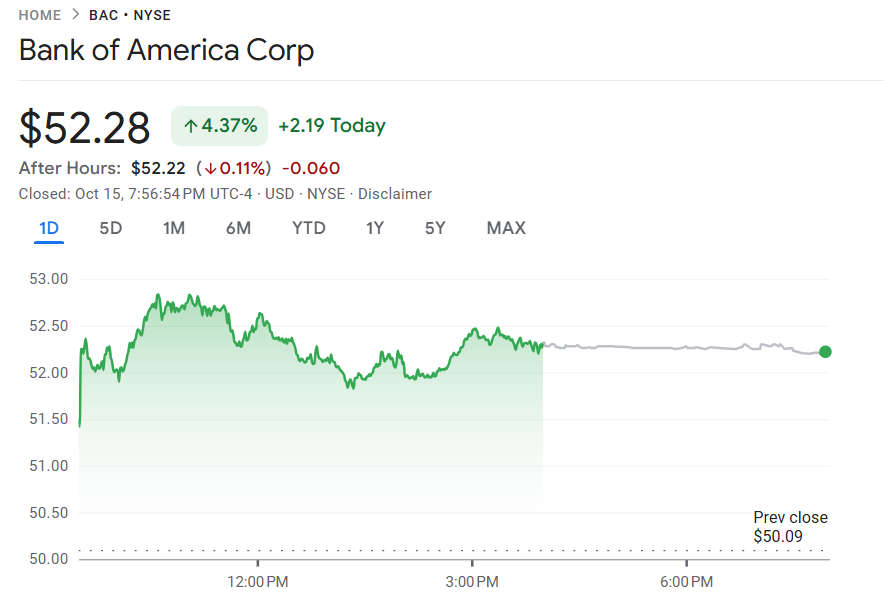 10 月 15 日至 16 日,美国银行(BAC)公布 2025 年第三季度财报,营收同比增长 11% 至 280.9 亿美元,超出市场预期的 274.8 亿美元;每股收益(EPS)1.06 美元,高于预期的 0.95 美元。
