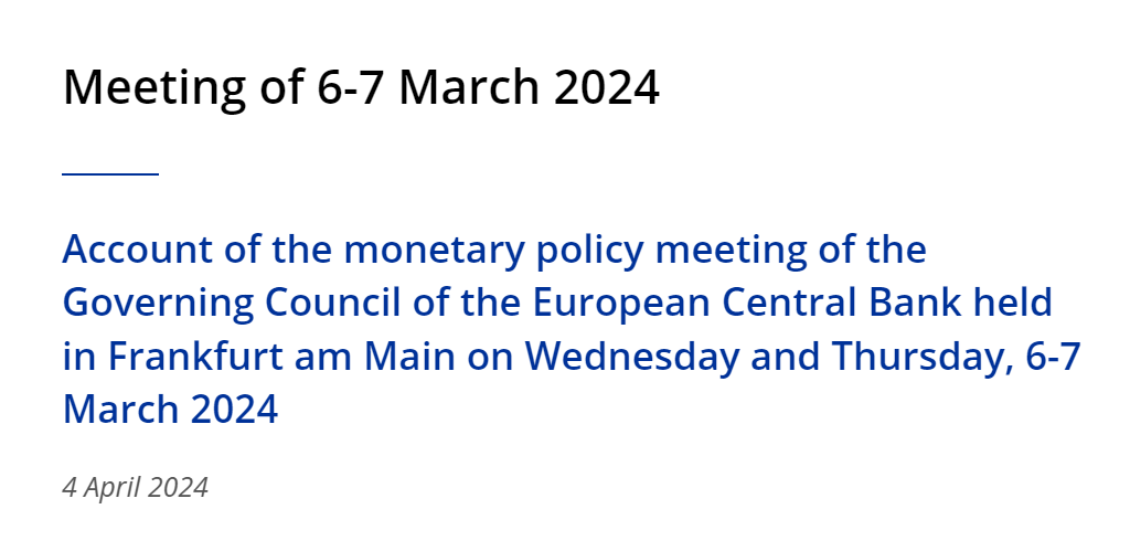 同日,欧洲央行公布 3 月 6 –7 日货币政策会议纪要。与会者一致认为,当前会议上讨论降息还为时过早。他们确认重要的是进一步推进通胀放缓的进程,并积累更多证据让欧洲央行管委会充分确信,通胀将及时和可持续地回落至目标水平。