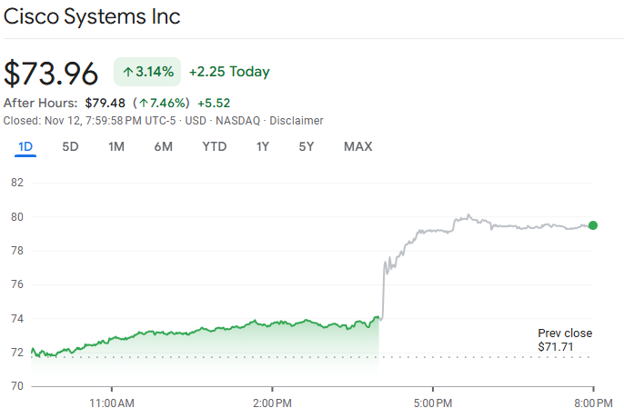 思科第一季度业绩超预期,核心网络业务强劲带动营收增长 7.5%