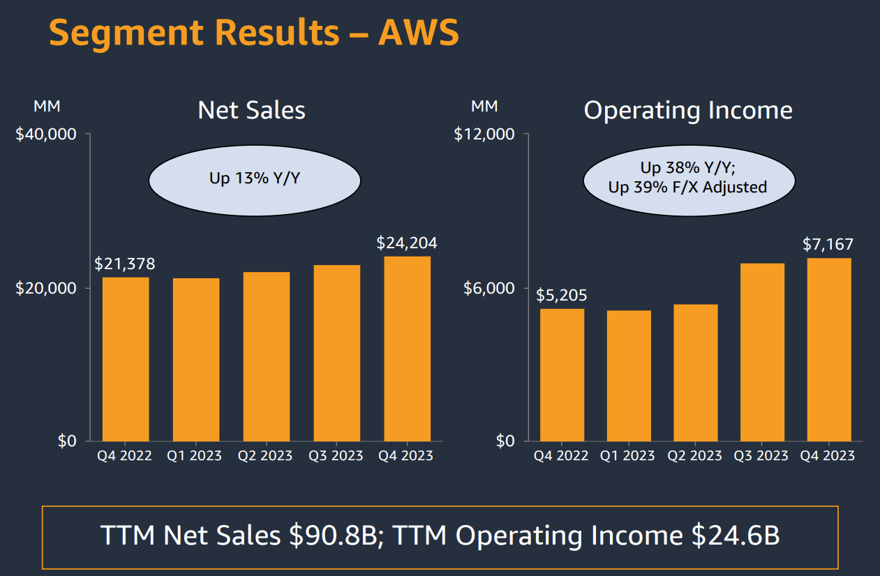 由于削减成本出成效,亚马逊四季度业绩和一季度业绩指引大致好于预期,其中亚马逊云业务营收同比增长 13%,缓解了投资者对云服务需求下降的担忧。