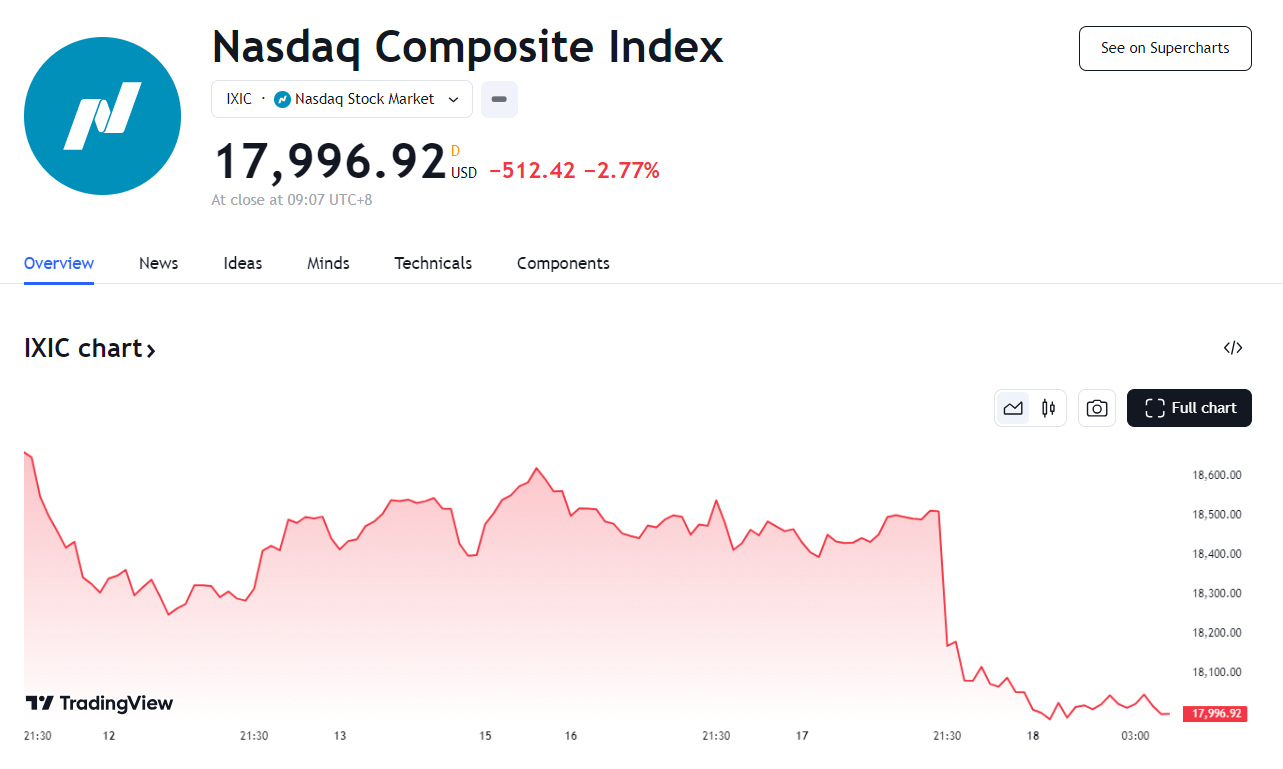 纳指暴跌逾 500 点,美联储官员称或很快降息