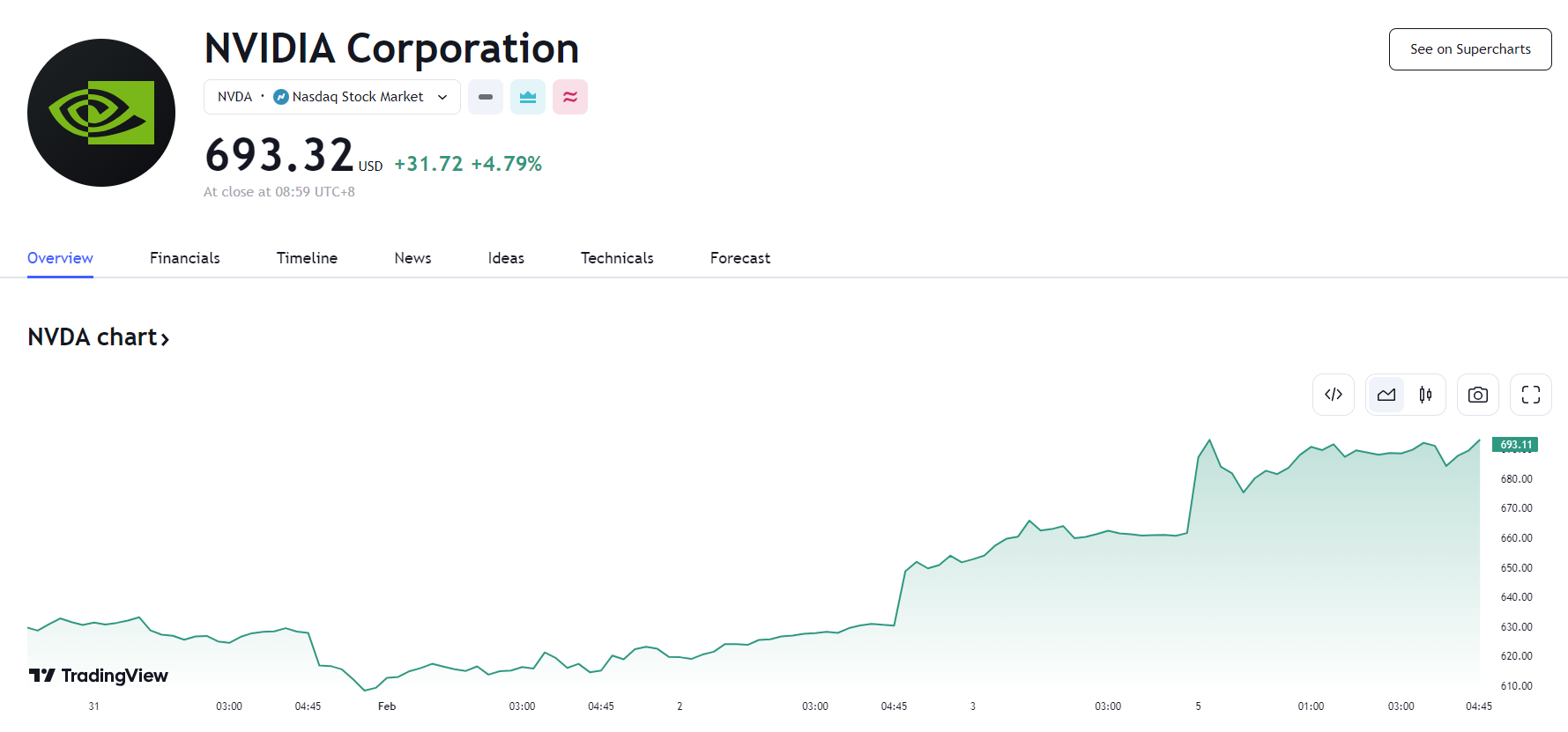 受利好消息提振,英伟达收涨近 5%,连续三日创历史新高。同时,高盛上调了英伟达目标价,预计还将涨超 20%。