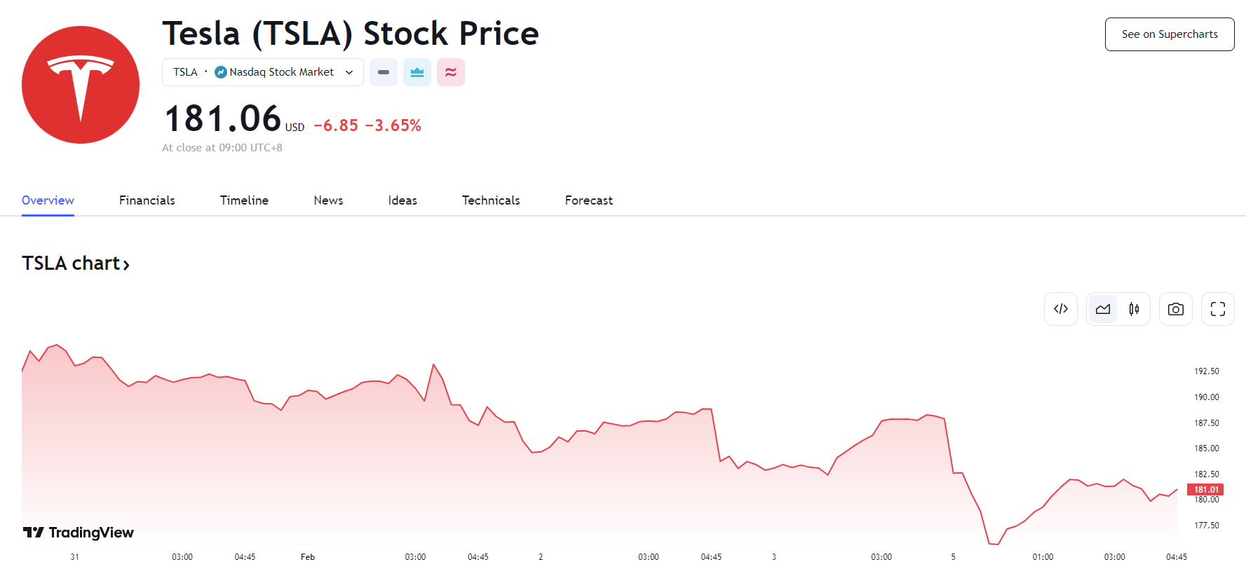SAP 将特斯拉排除在汽车供应商清单之外的消息出来后,令特斯拉美股盘中一度大跌约 7%,使得其最近五个交易日股价累计跌幅扩大至超过 10%,而年初至今仅仅一个月略多时间的跌幅达到惊人的约 30%。