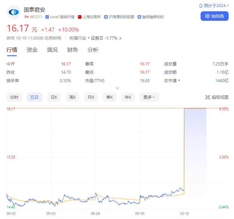 行业动态 | 中国央行 5000 亿“互换便利”落地,国泰君安、海通证券复牌涨停