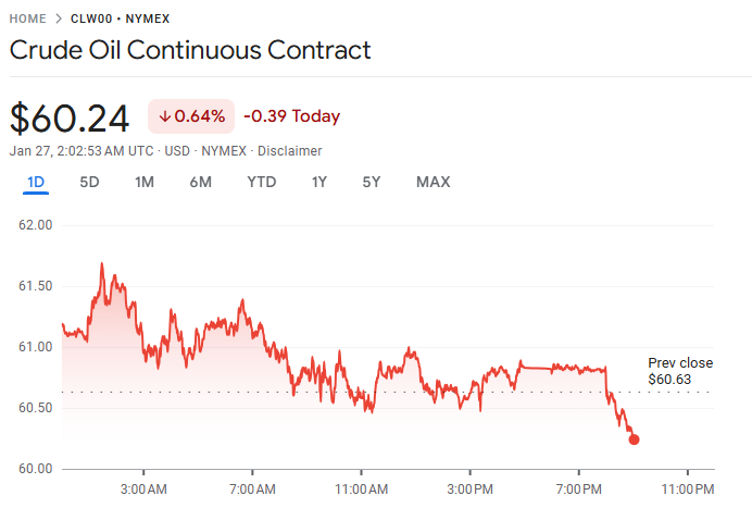 国际油价周一小幅回落,投资者在经历前一交易日因美国产油中断与美伊紧张情势推动的逾 2% 涨幅后,重新评估供应面最新进展。