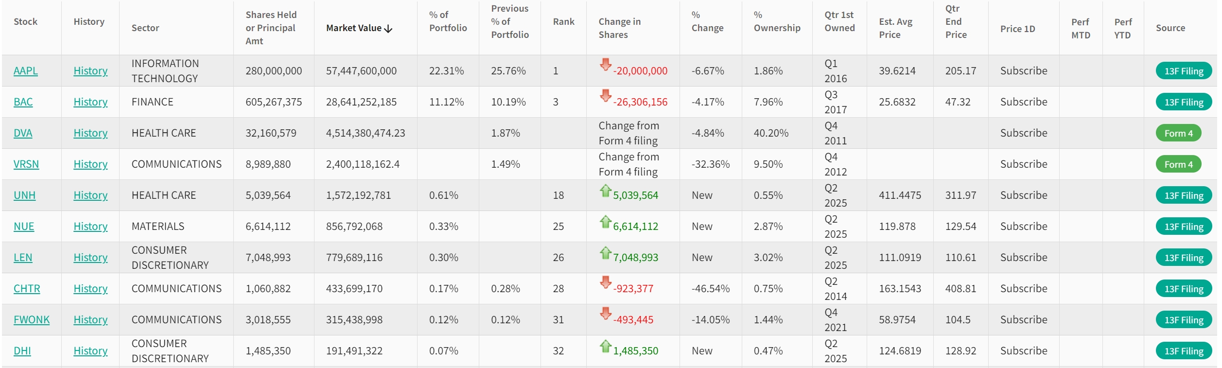 行业动态 | 巴菲特 Q2 重启抛售苹果、新建仓联合健康!“神秘股票” 持仓揭晓