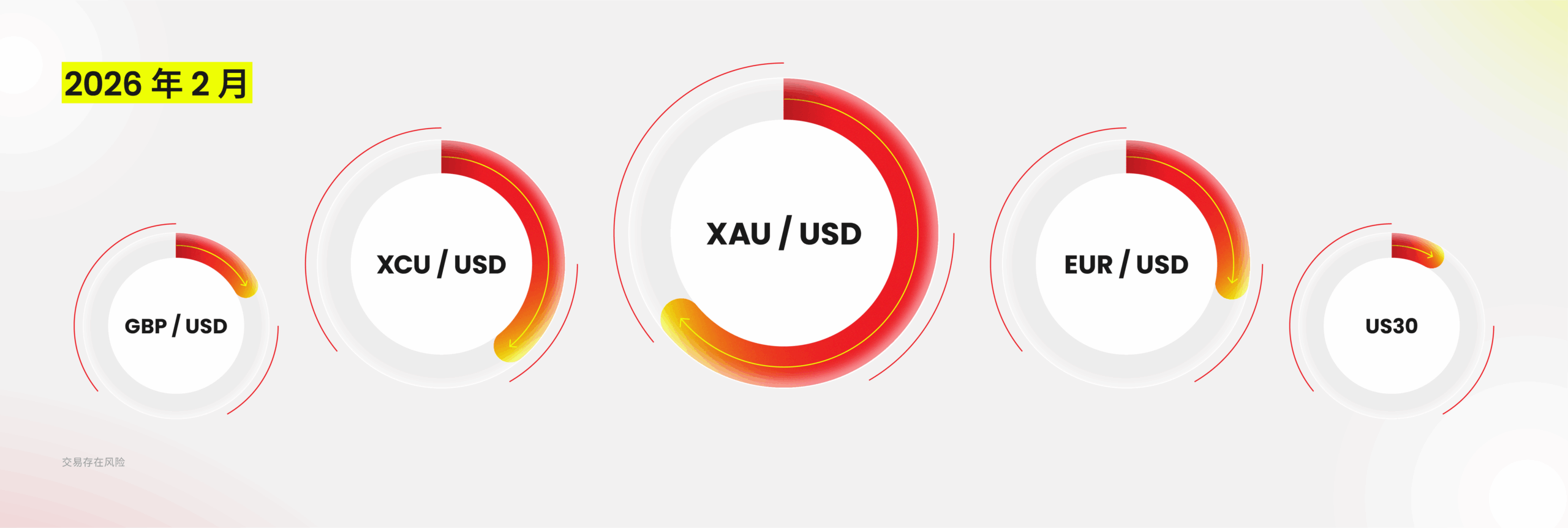 从热门品种来看,XAUUSD、XCUUSD、EURUSD、 GBP/USD、US30 位于交易量前五,反映出避险资产、工业金属、主要货币对及股指市场仍是投资者核心配置选择。其中,XCUUSD(铜)成为当月交易量增量最大的品种,增量达 13.22 亿美元,核心源于全球铜市场供给端扰动持续,叠加新能源与 AI 算力产业需求韧性支撑,价格波动与修复行情催生了大量波段交易机会。
