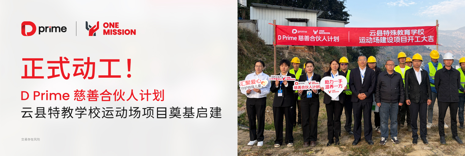 运动场从蓝图走向开工,离不开自 2025 年 8 月公益项目启动以来,D Prime 慈善合伙人计划募集期内广大客户与合作伙伴的倾力支持。项目最终以 100% 的募集达成率圆满收官。我们特别感谢捐助贡献位列前茅的合作伙伴,正是每一位参与者的信任与善意,共同推动了这份爱心从愿景走向现实。