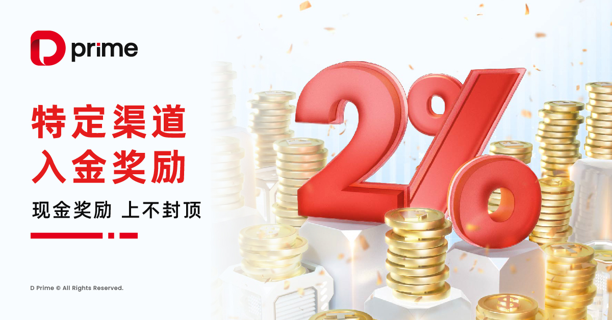 D Prime 延续广受好评的入金回馈活动,您只需通过 USDT 或国际电汇(USD)等指定渠道入金,即可享受高达 2% 的现金回赠,奖励无上限!助您灵活配置资金,高效把握年末市场机遇,让财富在节日氛围中持续增值。