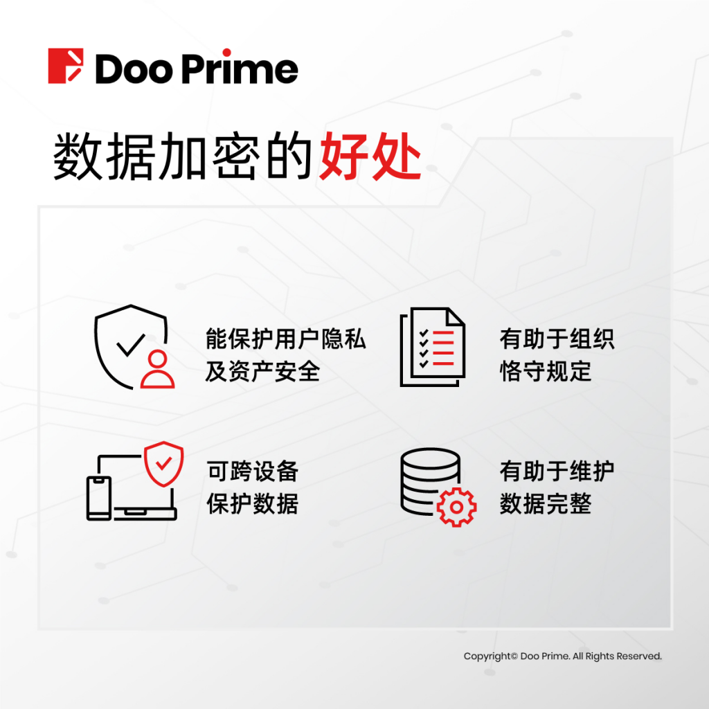 事实上,数据加密可有效预防数据泄露,减轻安全问题。Doo Prime 十分注重客户的隐私及资金安全,对所有的系统间通讯都进行了数据加密。