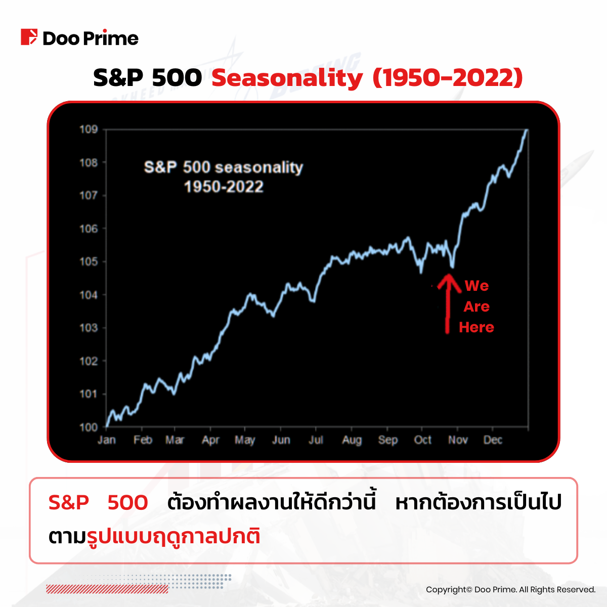 ตั้งแต่ปี 1950 เดือนพฤศจิกายนและธันวาคมเป็นช่วง 2 เดือนที่ดีที่สุดของปีสำหรับตลาดหุ้น 66% ของเวลาทั้งหมด เดือนพฤศจิกายนมีผลตอบแทนเป็นบวก โดยมีกำไรเฉลี่ย 1.44%