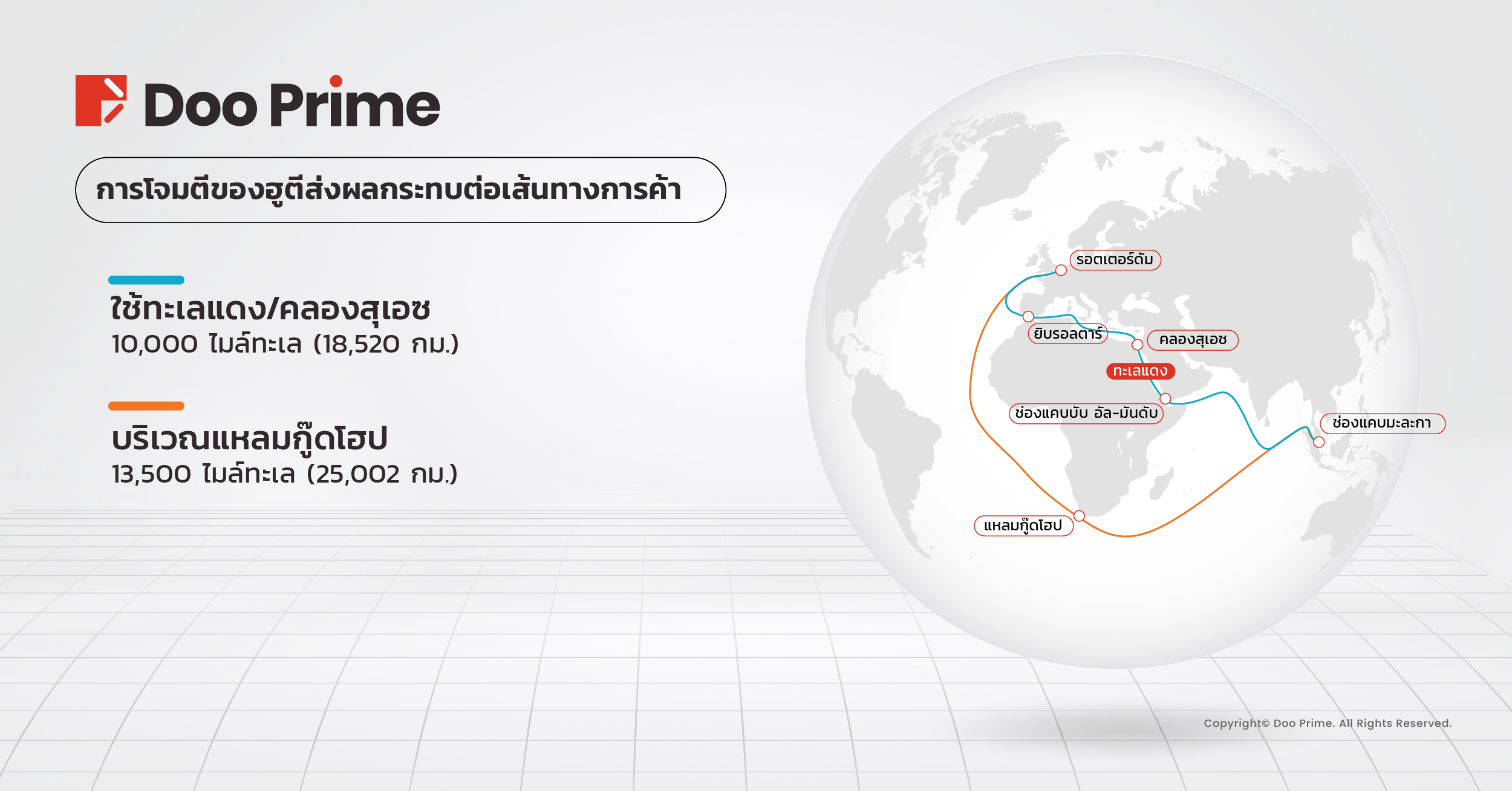 การหยุดชะงักในกิจกรรมทางทะเลเมื่อเร็วๆ นี้ ซึ่งได้รับแรงหนุนจากการโจมตีของกลุ่มกบฏฮูตีในทะเลแดงและคลองสุเอซ ทำให้เกิดความท้าทายที่สำคัญต่อการค้าโลก การโจมตีเหล่านี้ส่งผลให้การจราจรทางเรือลดลง 85% ส่งผลให้เรือต้องแสวงหาเส้นทางอื่น โดยเฉพาะอย่างยิ่งการเปลี่ยนเส้นทางไปยังเส้นทางตะวันออก-ตะวันตกที่ยาวกว่ามากผ่านทางปลายด้านใต้ของทวีปแอฟริกา ผ่านแหลมกู๊ดโฮป