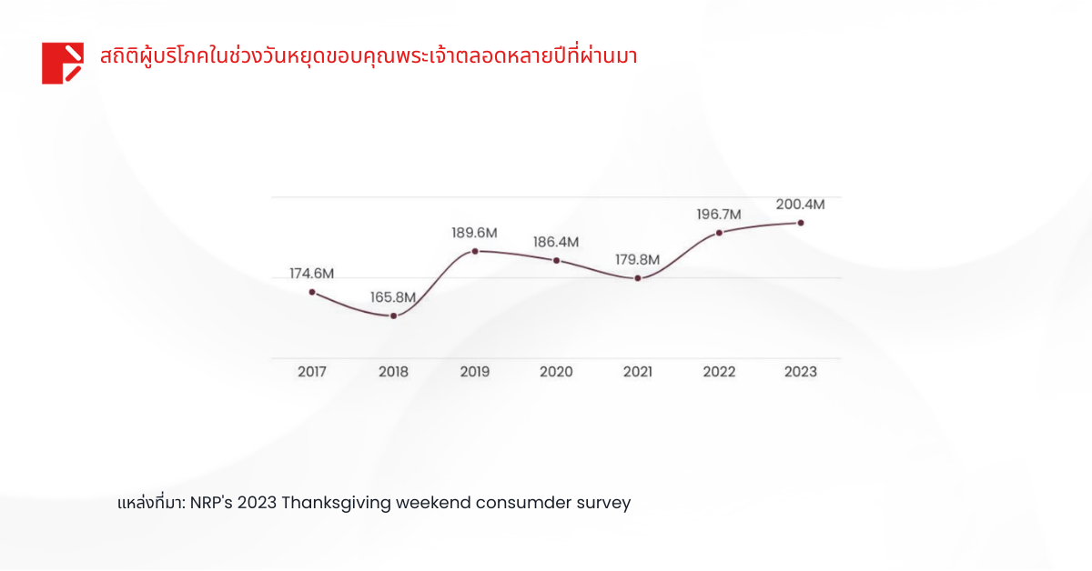จากข้อมูลของสหพันธ์การค้าปลีกแห่งชาติ (NRF) ในปี 2566 มีผู้บริโภคถึง 200.4 ล้านคนที่ออกมาช้อปปิ้งในช่วงวันหยุด 5 วัน ตั้งแต่วันขอบคุณพระเจ้าจนถึงไซเบอร์มันเดย์ ซึ่งทำลายสถิติปี 2565 ที่มีจำนวน 196.7 ล้านคน