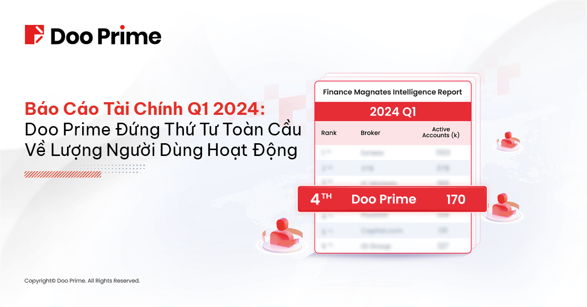 Finance Magnates, một trong những trang tin uy tín nhất trong ngành tài chính, gần đây đã cho ra mắt báo cáo ngành Q1 năm 2024. Trong đó, Doo Prime tự hào giữ vững vị trí thứ tư toàn cầu về lượng người dùng đang hoạt động, với tổng số 170.000 người dùng. Đây là mức tăng 20% so với con số 143.000 người dùng vào Q2 năm 2023, cho thấy sự tin tưởng và công nhận ngày càng rộng rãi của các nhà giao dịch trên toàn cầu dành cho thương hiệu của chúng tôi.