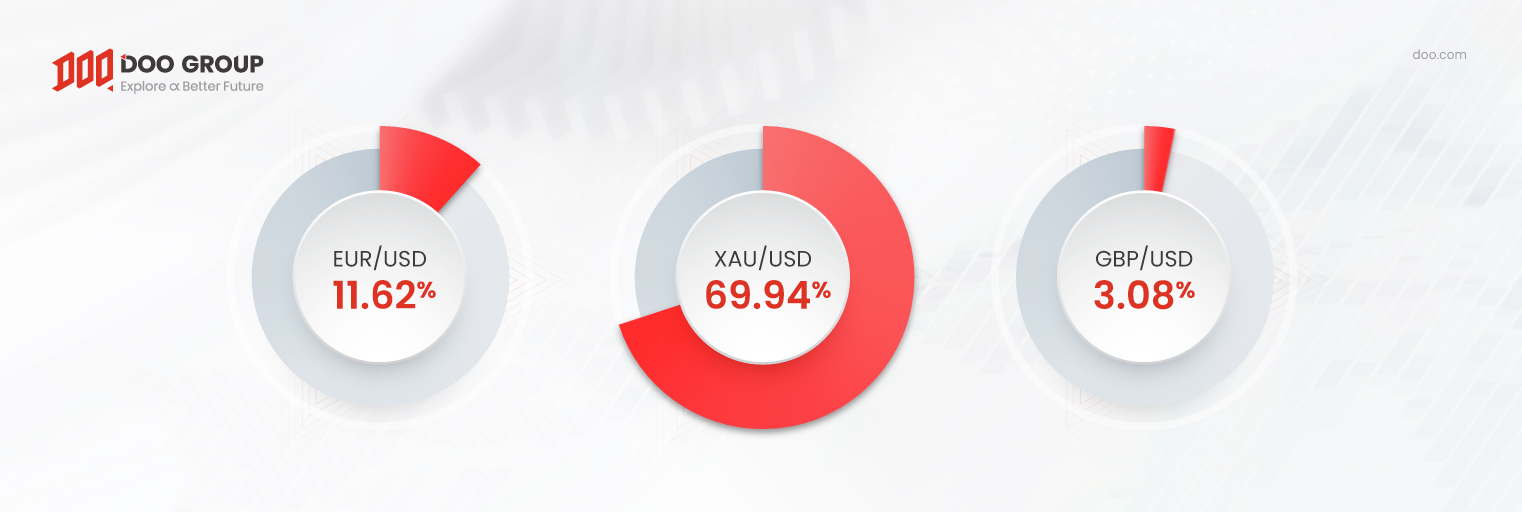 Từ dữ liệu trên, có thể nhận thấy rằng, các cặp tỷ giá XAU/USD, EUR/USD và GBP/USD là những lựa chọn hàng đầu của các nhà giao dịch. Cụ thể, các cặp tỷ giá trên chiếm đến 84.64% tổng khối lượng giao dịch trong tháng 11. Trong số đó, cặp tỷ giá XAU/USD ghi nhận khối lượng giao dịch hàng tháng cao nhất với 49.02 tỷ USD. Hai cặp tỷ giá với hiệu suất vượt trội còn lại là EUR/USD và GBP/USD ghi nhận tổng khối lượng giao dịch hàng tháng ở ngưỡng 10.3 tỷ USD.
