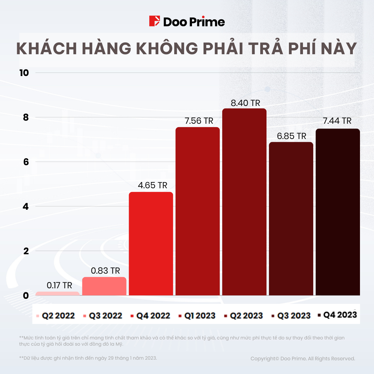 Quý cuối cùng của năm 2023 đã ghi nhận tổng phí Swap được miễn ở mức cao ấn tượng, đạt ngưỡng 7.438 triệu USD. Điều này cho thấy, các nhà giao dịch đã biết cách tận dụng tối đa ưu đãi miễn phí Swap trong suốt thời gian này.