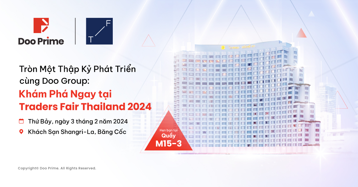 Chúng tôi trân trọng mời bạn đến tham dự Triển Lãm Tài Chính Traders Fair Thailand 2024. Hãy đến, kết nối và khám phá hệ thống các sản phẩm dịch vụ đẳng cấp tại Doo Prime.