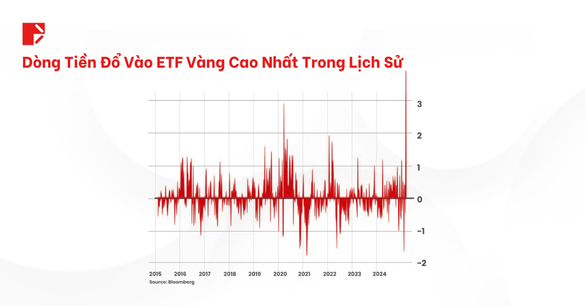 Các quỹ ETFs vàng vừa chứng kiến sự đổ xô của dòng tiền trị giá 4.38 tỷ USD. Các nhà đầu tư thì đang chạy đến nơi “trú ẩn” an toàn, và giá vàng thì vẫn tiếp tục tăng. Theo đó, biểu đồ Dòng Tiền Quỹ Tuần ETF Vàng GLD từ Bloomberg đang cho thấy đây là mức tăng đột biến trong lịch sử. Như vậy, có thể thấy rằng, dòng tiền đang chảy rất nhanh vào vàng trong thời điểm hiện tại.