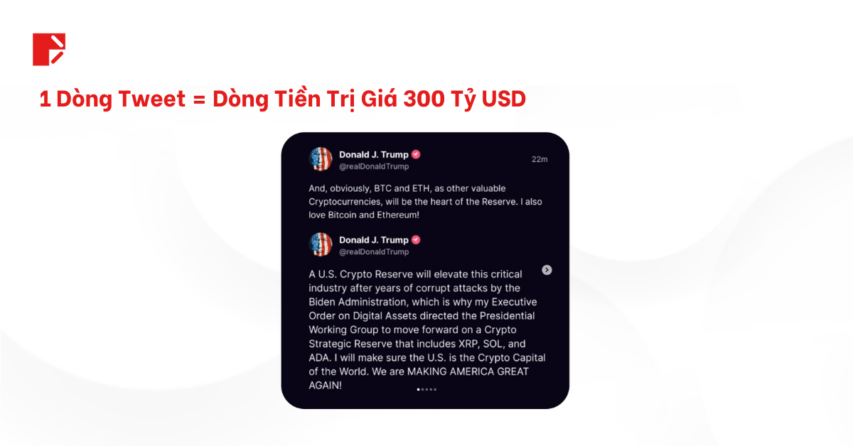 Một bài đăng. Một tin nhắn. Và không nghi ngờ gì nữa, 300 tỷ đô la sau đó đã lần lượt đổ vào tiền điện tử chỉ trong vài phút.
