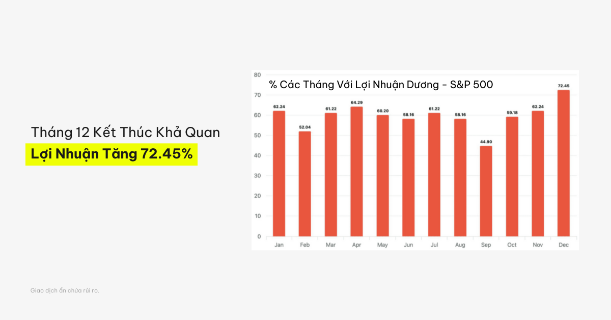 Đây là tỷ lệ lợi nhuận cao nhất trong tất cả các tháng, với gần 3/4 tháng 12 (72.45%) đều khép lại với mức lợi nhuận dương.