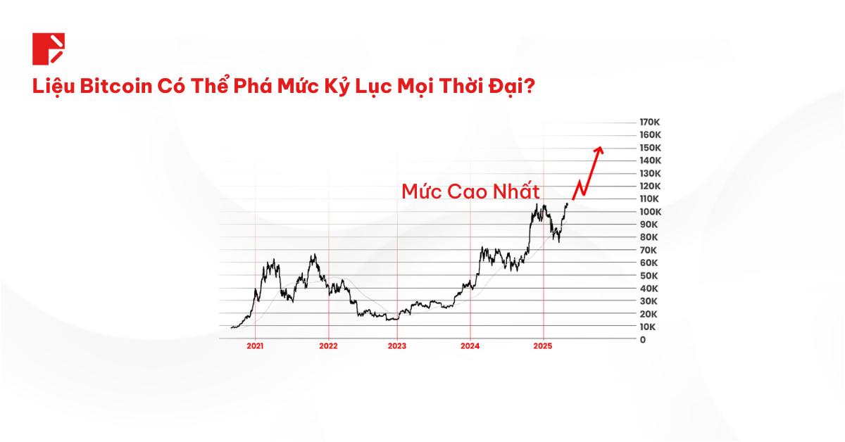 BTC hiện đang trải nghiệm mức cao nhất mọi thời đại và hành động giá đang nằm ngay dưới mức trần kể trên. Như vậy, chỉ cần một cú đột phá rõ ràng trên mức $110K là Bitcoin có thể mở rộng “đường đi nước bước” đến mốc $140K-$150K.