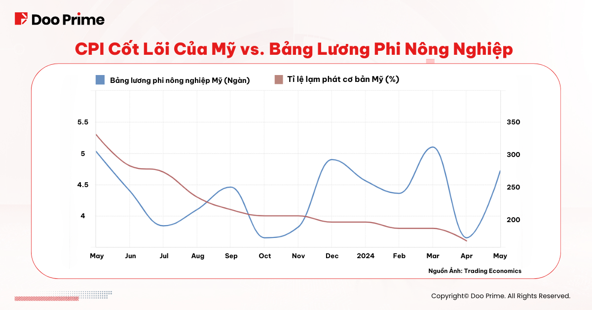 Thước đo lạm phát chính của Fed – Chỉ số Giá Tiêu Dùng Cốt Lõi (CPI), không bao gồm thực phẩm và giá năng lượng – đã giảm đều. CPI tháng Tư tăng nhẹ 0,3% so với cùng kỳ tháng và 3,6% so với cùng kỳ năm, đây là mức tăng ít nhất trong vòng 03 năm qua.