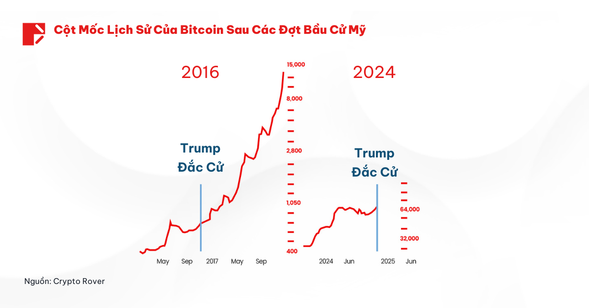 Bitcoin đã cho thấy sự tăng trưởng mạnh mẽ sau các cuộc bầu cử tổng thống Mỹ, đặc biệt là dưới sự lãnh đạo của những nhà lãnh đạo thân thiện với kinh doanh như Trump. Sau chiến thắng của ông trong cuộc bầu cử năm 2016, giá Bitcoin đã tăng vọt từ 700 USD lên trên 10.000 USD trong vòng một năm.