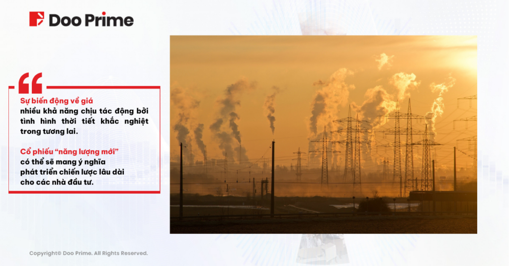 Tình hình thời tiết khắc nghiệt đích thực đã gióng lên hồi chuông cảnh báo các vấn đề liên quan đến an ninh năng lượng, an ninh lương thực, cũng như an ninh về môi trường trong tương lai của tất cả các quốc gia trên thế giới. Chúng ta có thể dễ dàng nhận thấy rằng, xu hướng biến động về giá của các mặt hàng nhiều khả năng sẽ chịu ảnh hưởng thường xuyên hơn bởi tình hình thời tiết khắc nghiệt. Chính vì thế, cổ phiếu “năng lượng mới” có thể sẽ mang ý nghĩa phát triển chiến lược lâu dài cho các nhà đầu tư.