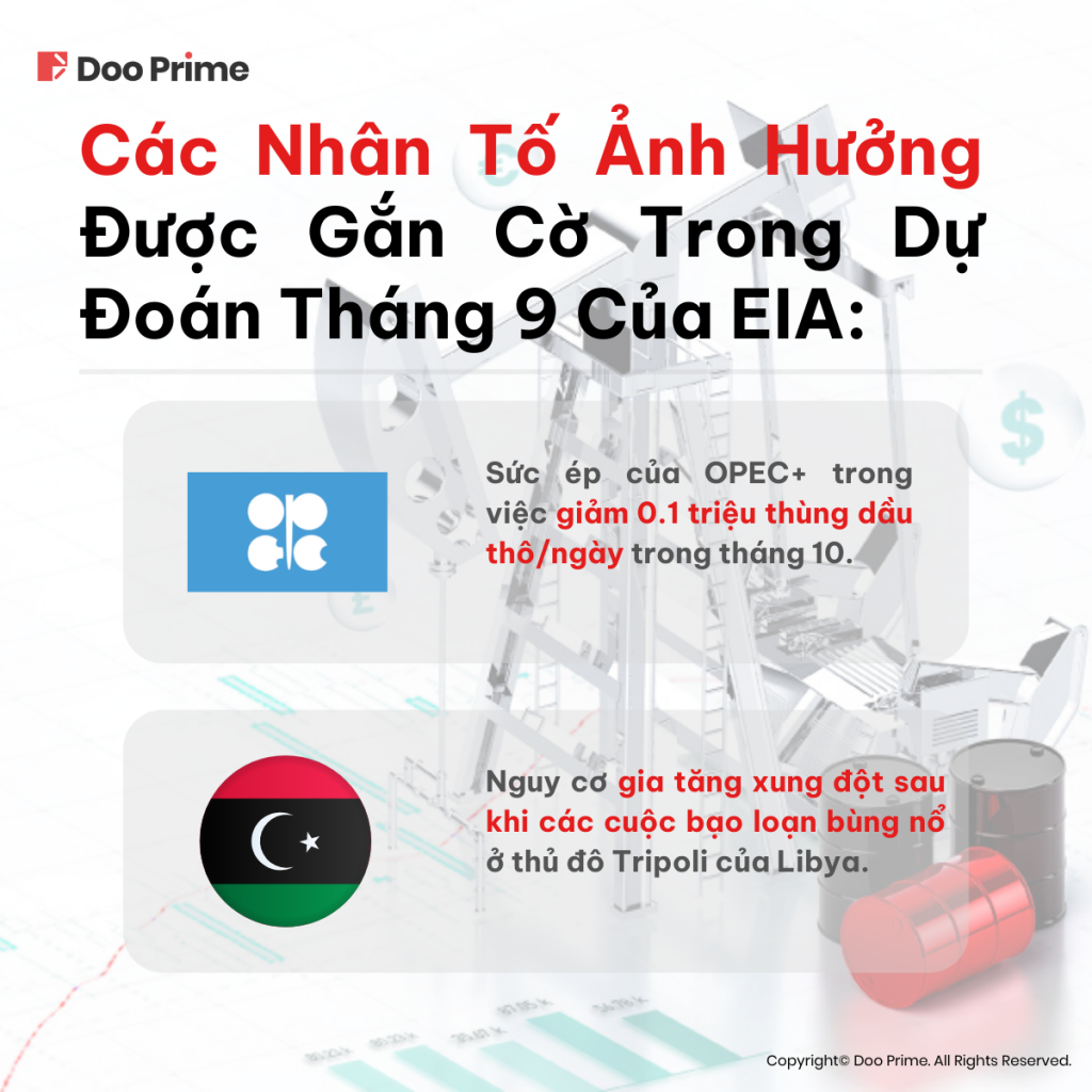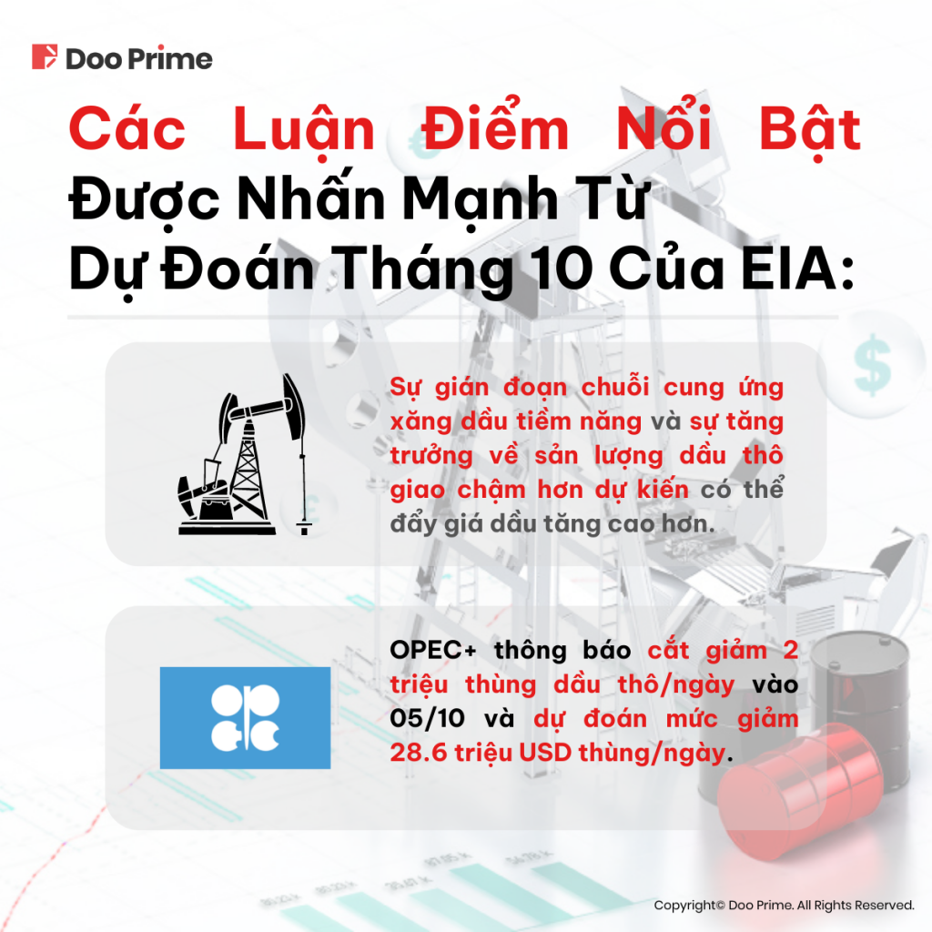 1. Sức ép của Tổ chức Các nước Xuất khẩu Dầu mỏ (OPEC+) trong việc giảm sản lượng dầu thô 0.1 triệu thùng/ngày trong tháng 10, cùng với khả năng tiếp tục cắt giảm sản lượng của mặt hàng này trong tương lai.