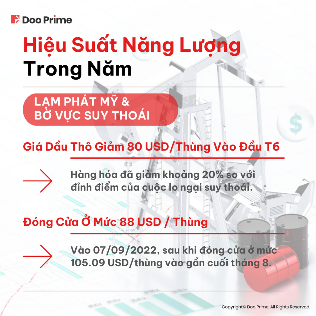 Xuyên suốt quý 3 của năm nay, giá dầu thô đóng cửa ở mức 88 USD/thùng vào ngày 7 tháng 9 năm 2022, sau khi đóng cửa ở mức 105.09 USD/thùng vào gần cuối tháng 8.